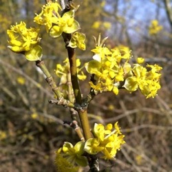 kleur geel bloeit van februari tot maart familie Cornaceae