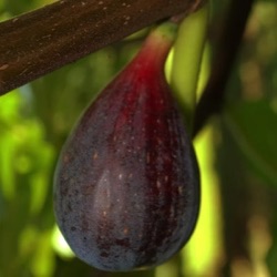 De zoete sappige vijgen zijn donker purper met oranje-roze vruchtvlees.